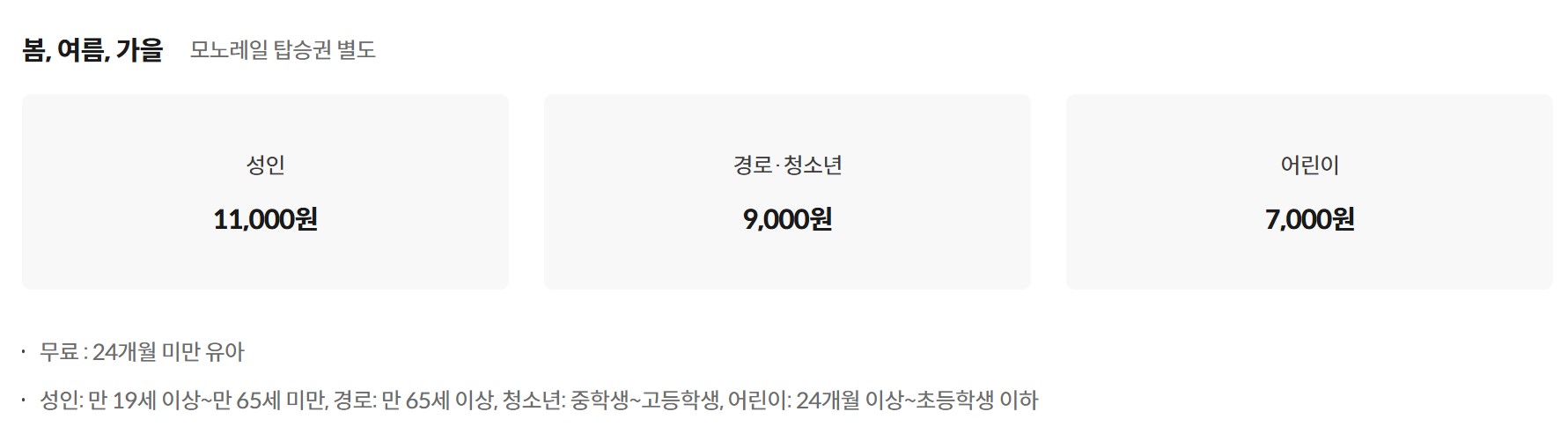* 우천 시 운영 여부: 비가 와도 정상 운영, 태풍·폭설 시 취소될 수 있음
